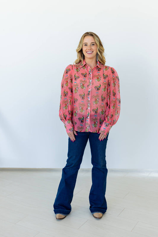 TH70 CHEETAH MESH RUFFLE TOP (7 Piece)