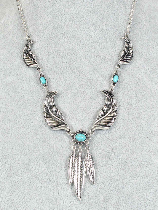 1258 HH112 TURQ FEATHER 18” NECKLACE