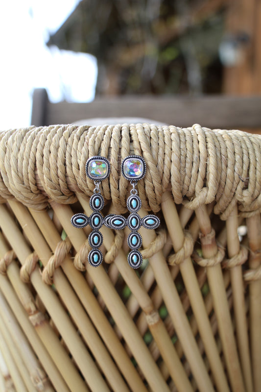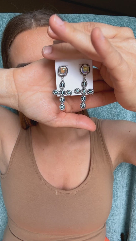 22246 H180 BLING STUD W CROSS DROP ER - Turq