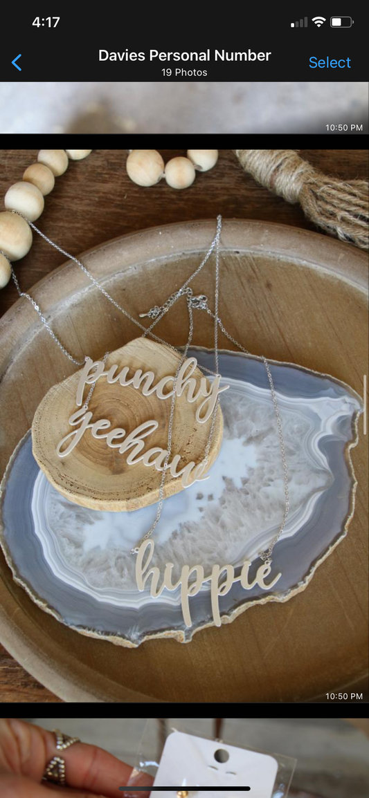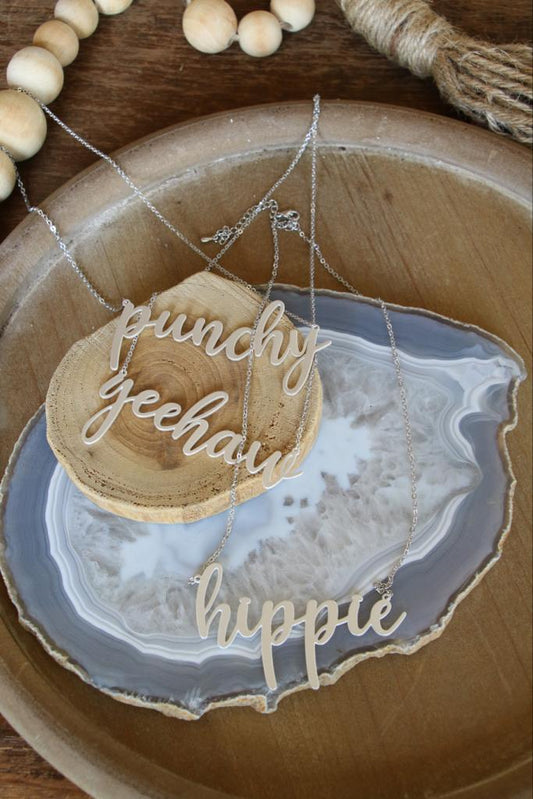 42230 WORD TEXT MATTE SILVER NECKLACE ($13.75)