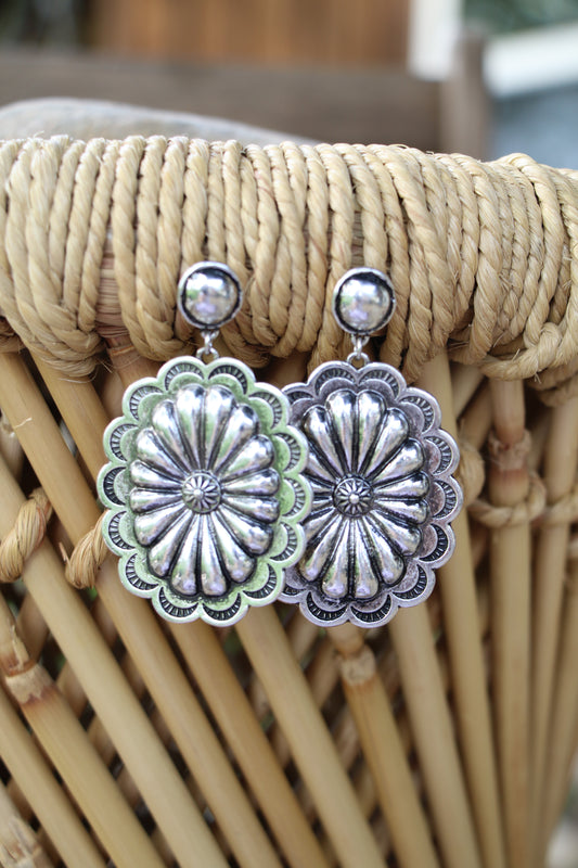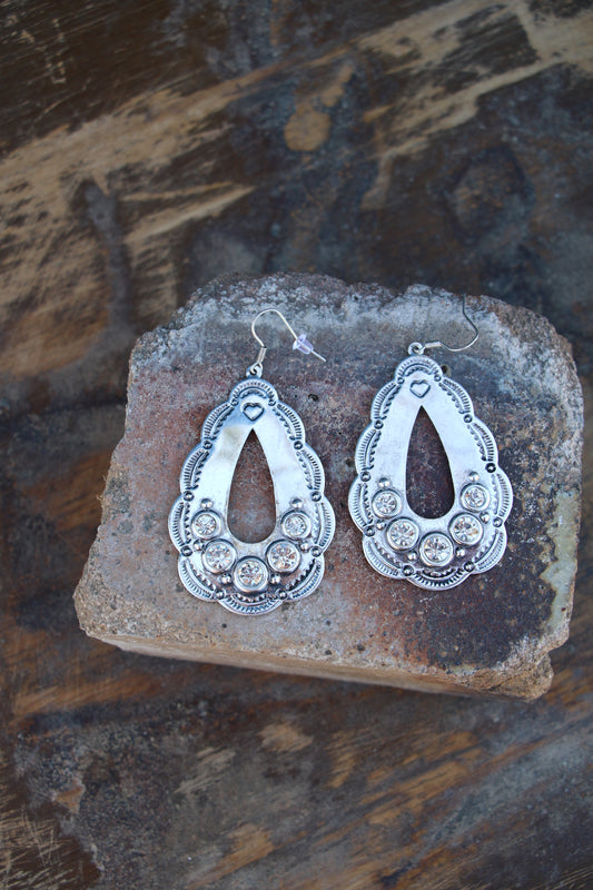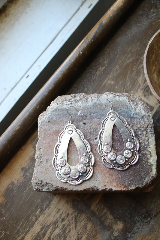 2009 R2-104 Western Twisted Teardrop Hoop Earrings with Concho Top – SB