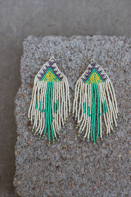 0078 R3-2 YELLOW TRIPLE SEED BEAD HOOP EARRING