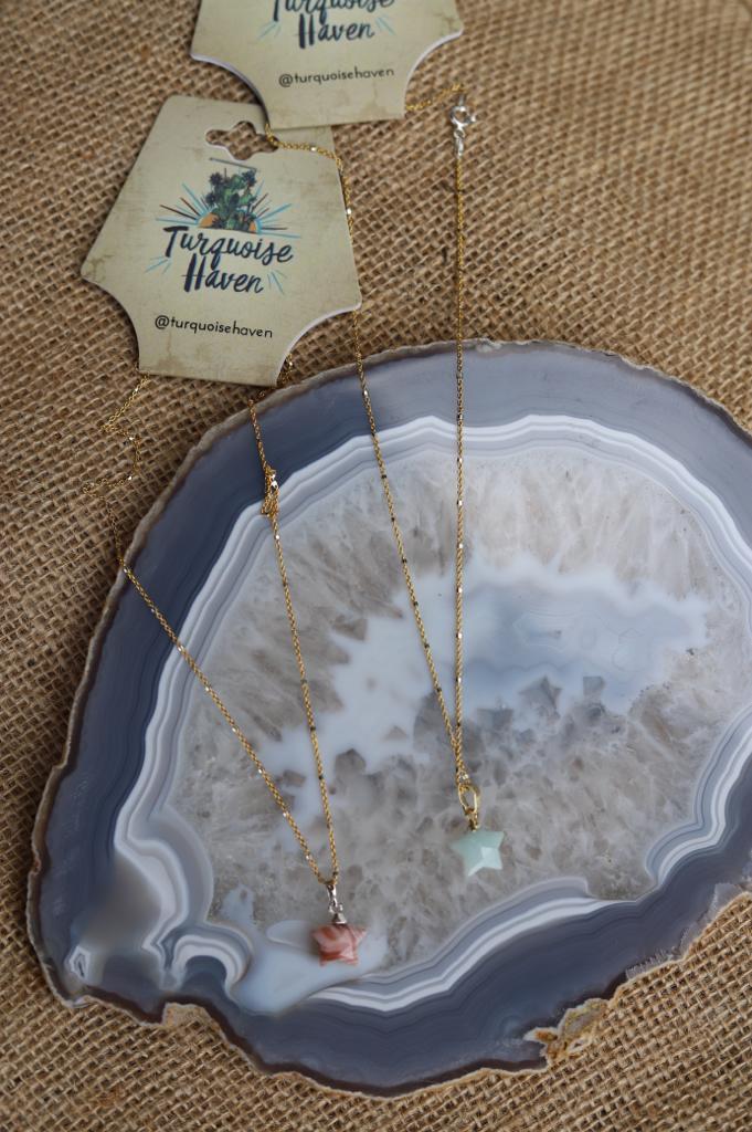 16 Inch Dipped Gold Chain with a Genuine Carve Star Charm. Star Necklace. Only Short Necklace Shown. Available in Mint or Blush