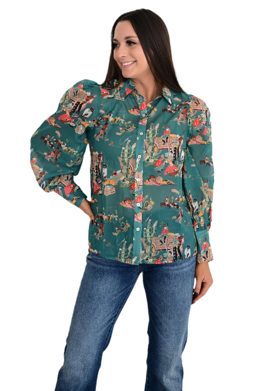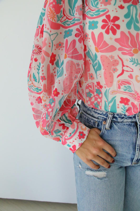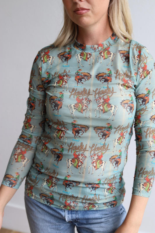 TH1221 IVORY COWGIRL COLLAGE MESH TOP(7 Piece)