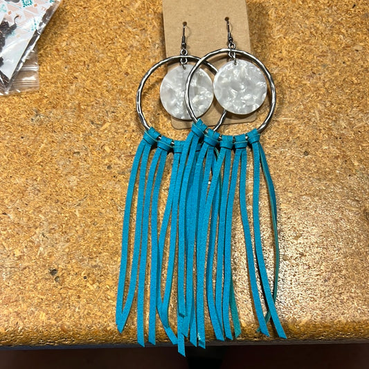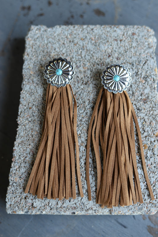 1611 T22 CONCHO W/ LEATHER TASSEL EARRING