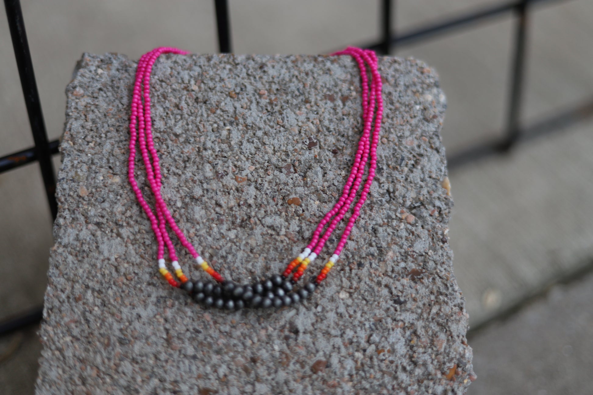 Seed beads w/ faux burnish silver beads chocker. 3 strand.
