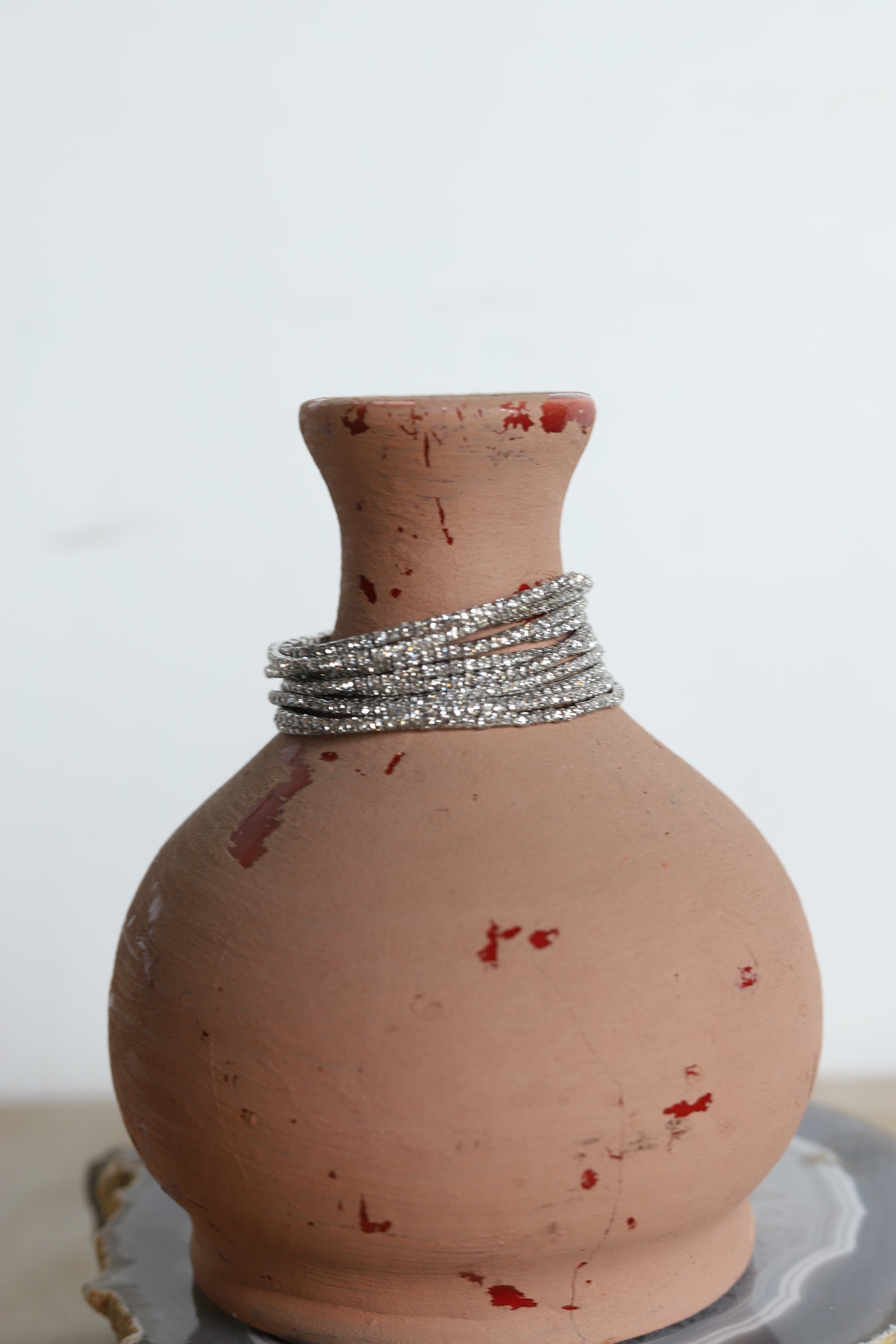 Make a dazzling statement with our Silver/Crystal Bracelet Set, a carefully curated collection designed for the woman who appreciates the allure of silver and the sparkle of crystals. With being stretchy this bracelet set can fit on any wrist, and is confortable to wear all day.