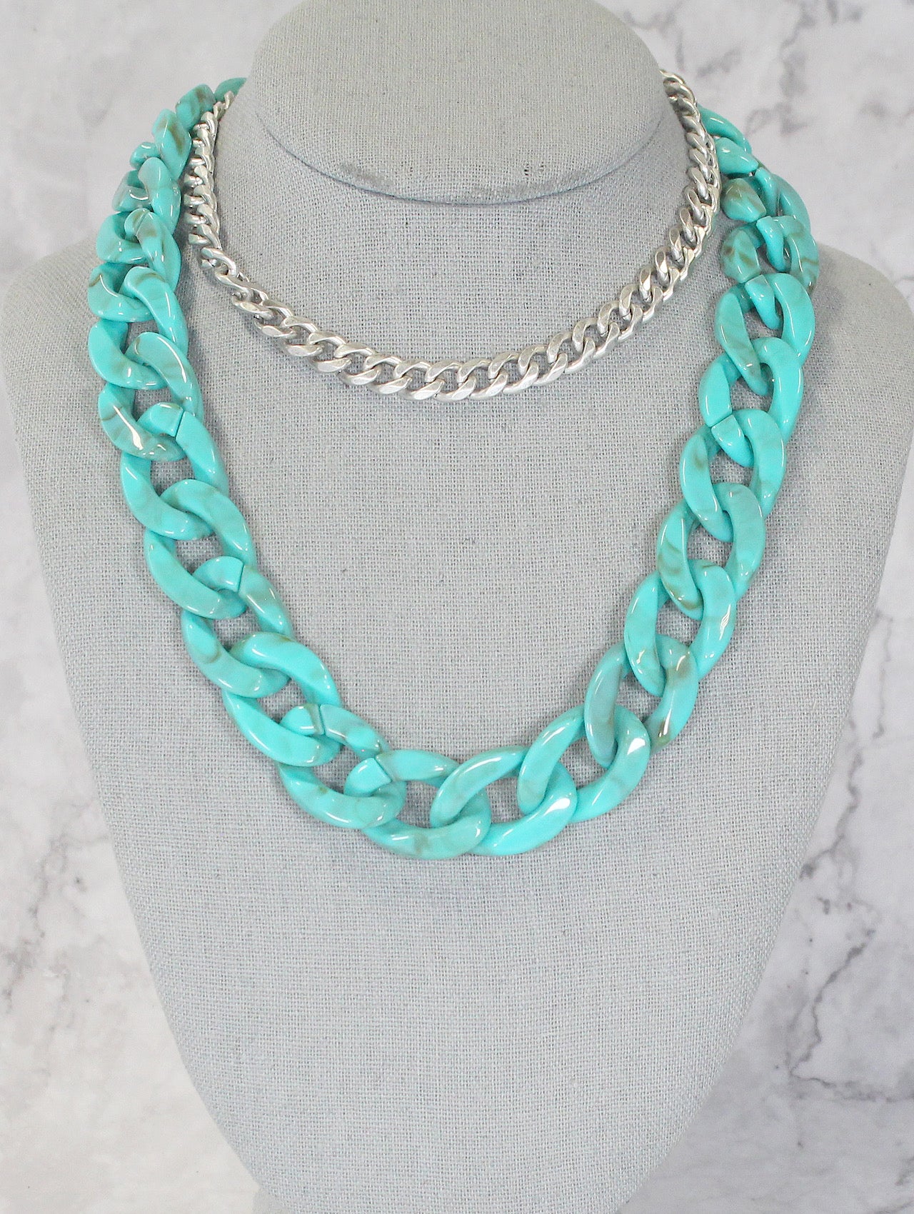 Silver and Turquoise Chain Layered Necklace. 16” turquoise necklace with a silver 12” to make the perfect 2 layer necklace