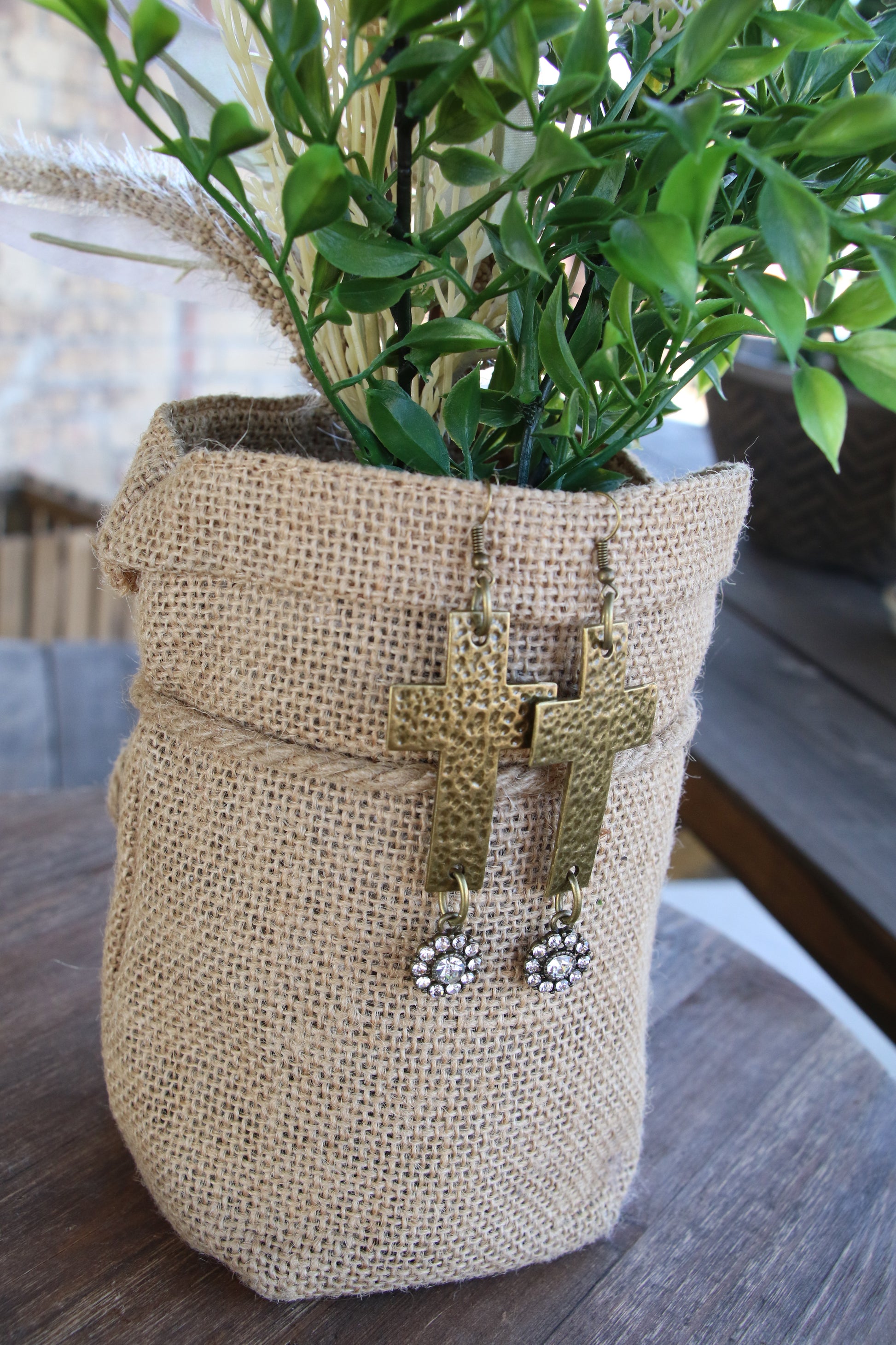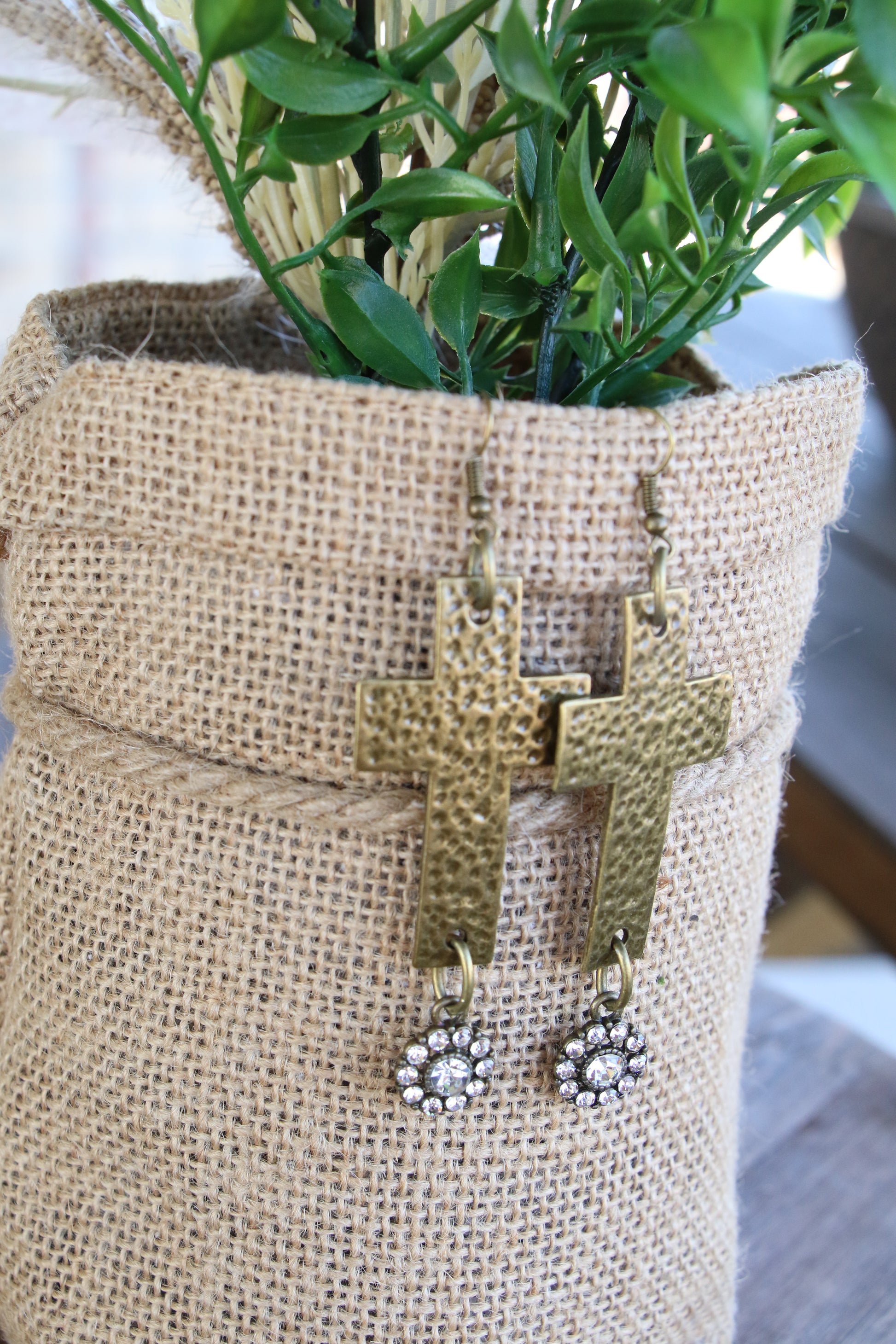 12232 E1-46 AG STAMPED CROSS W/ BLING DROP ER
