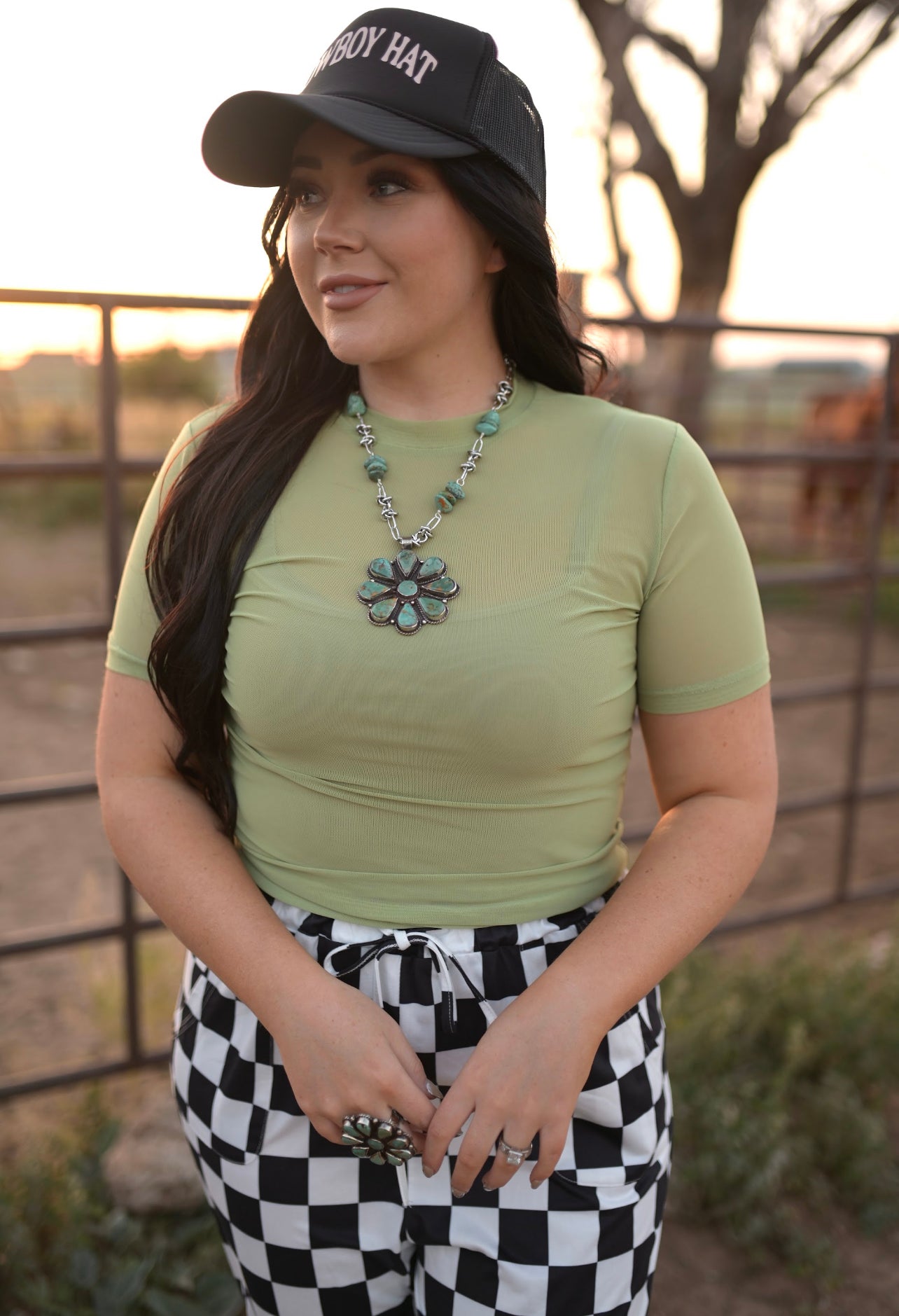 A little edgy, a little western—this sheer black mesh tee is the perfect layering piece for any bold cowgirl. With its lightweight, breathable fabric and fitted silhouette, it adds a modern touch to any outfit. Wear it over a bralette for a statement look or layer it under your favorite graphic tee for extra flair.