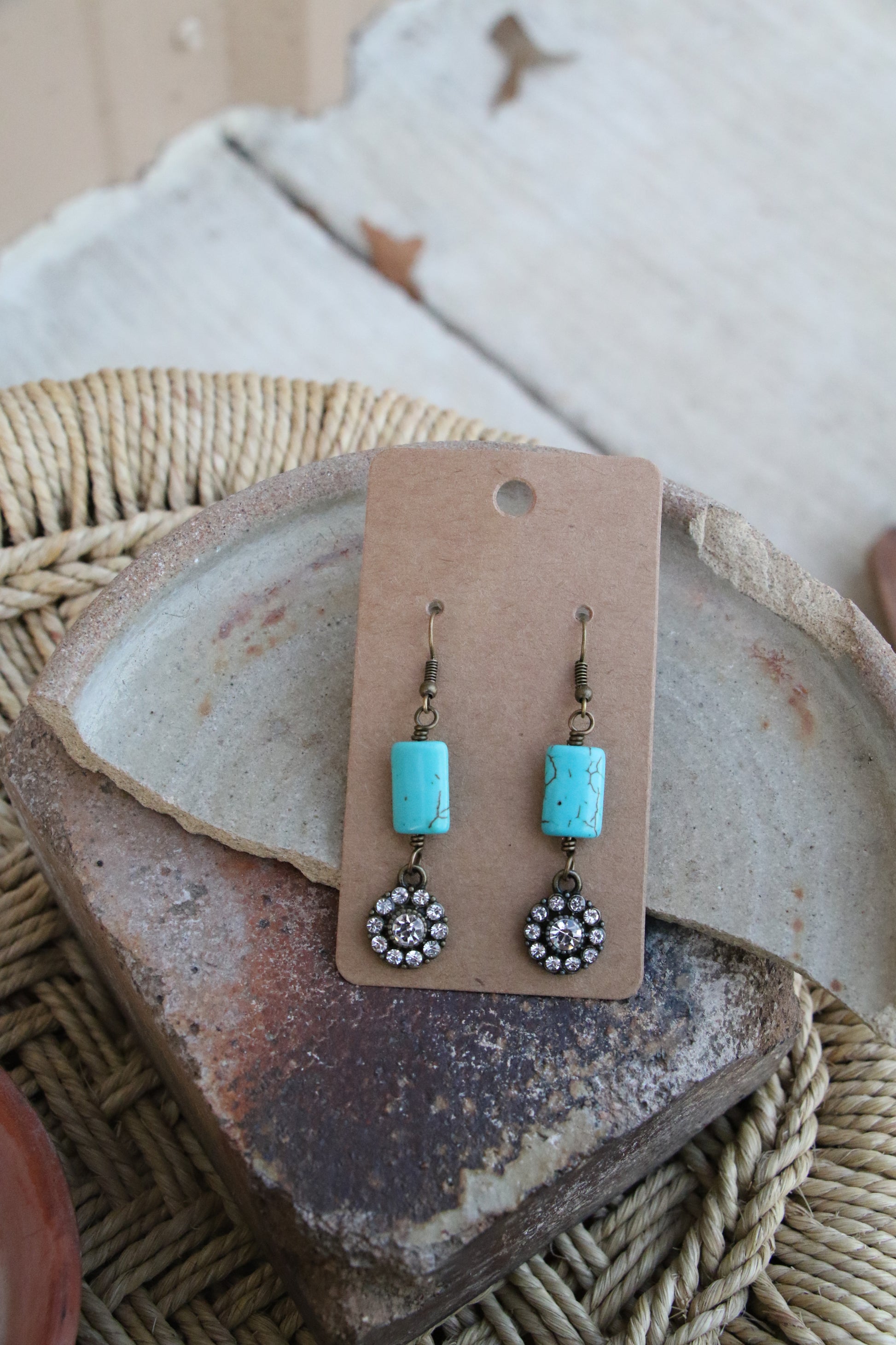 12314 R3-51 TURQ RECTANGLE W/ FLOWER BING DROP ER