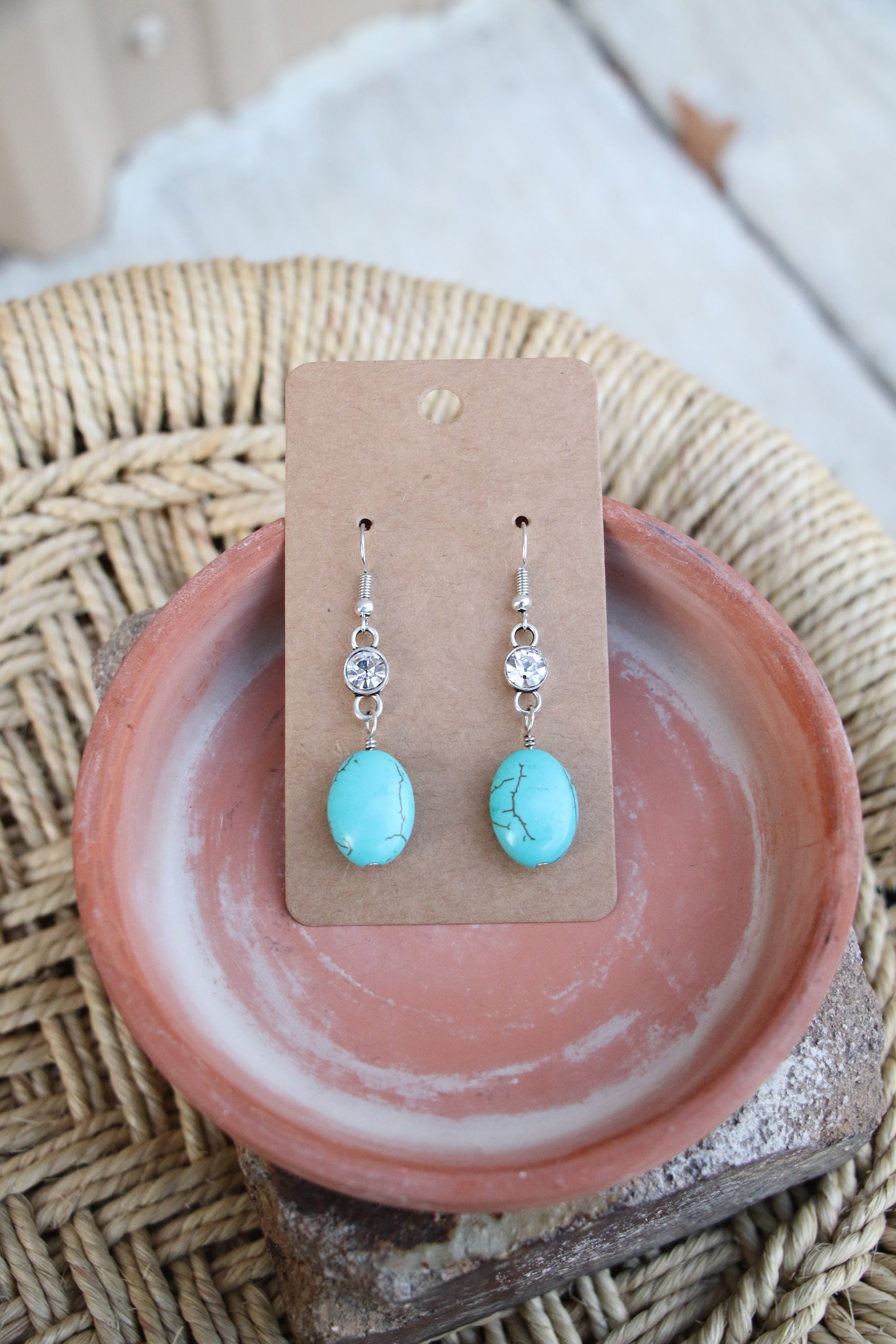 1235 R2-68 SILVER CRYSTAL CHARM W OVAL TURQ ER