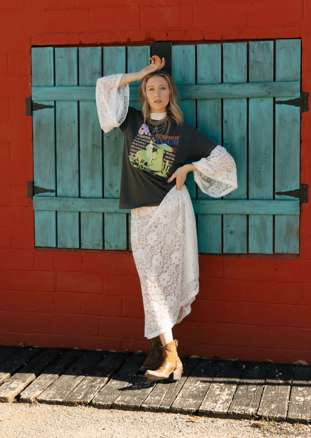 - Color: Soft white, matching the coordinating lace top.