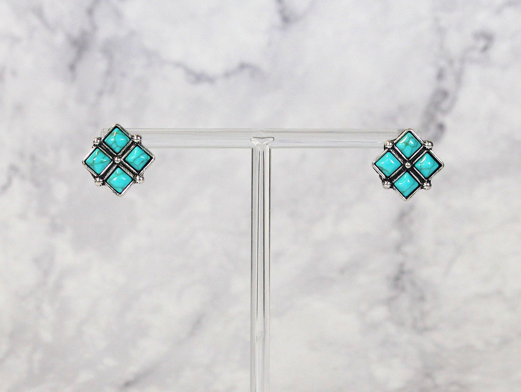 Introducing our Diamond-Shaped Turquoise Stud Earrings. These stud earrings feature diamond-shaped turquoise stones that capture the essence of natural beauty. The classic stud design makes these earrings easy to wear. The secure backings keep the earrings in place throughout the day.