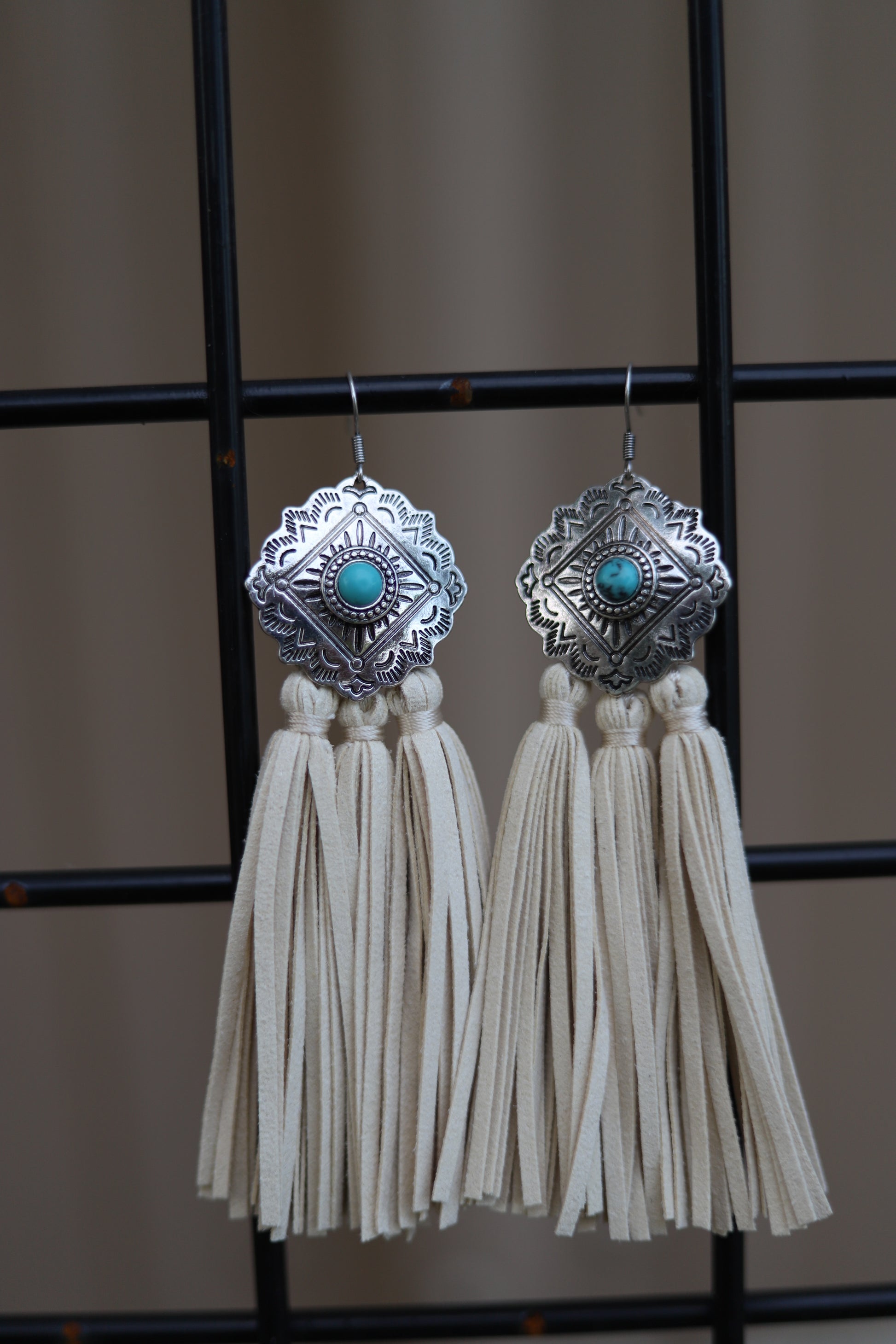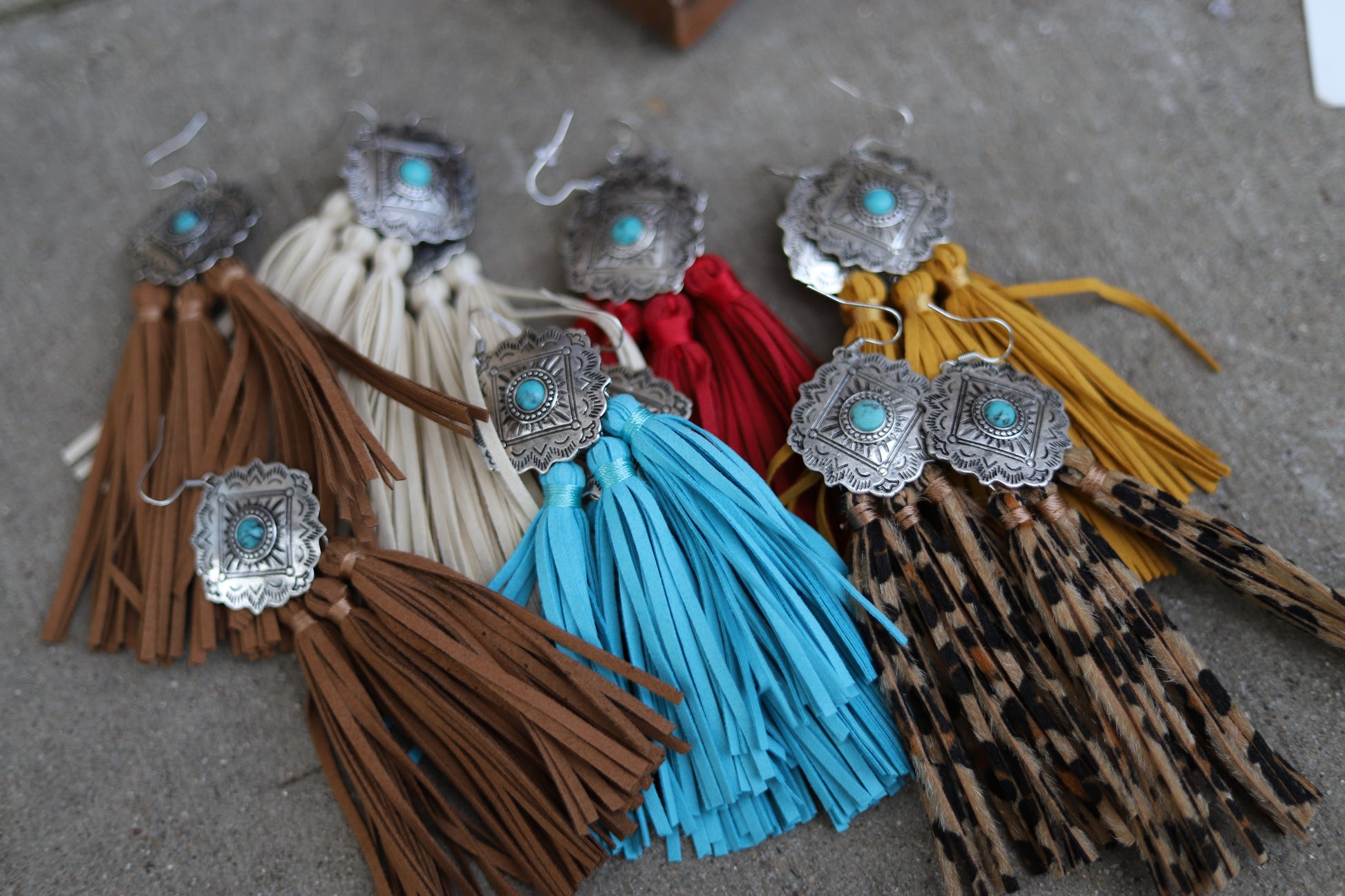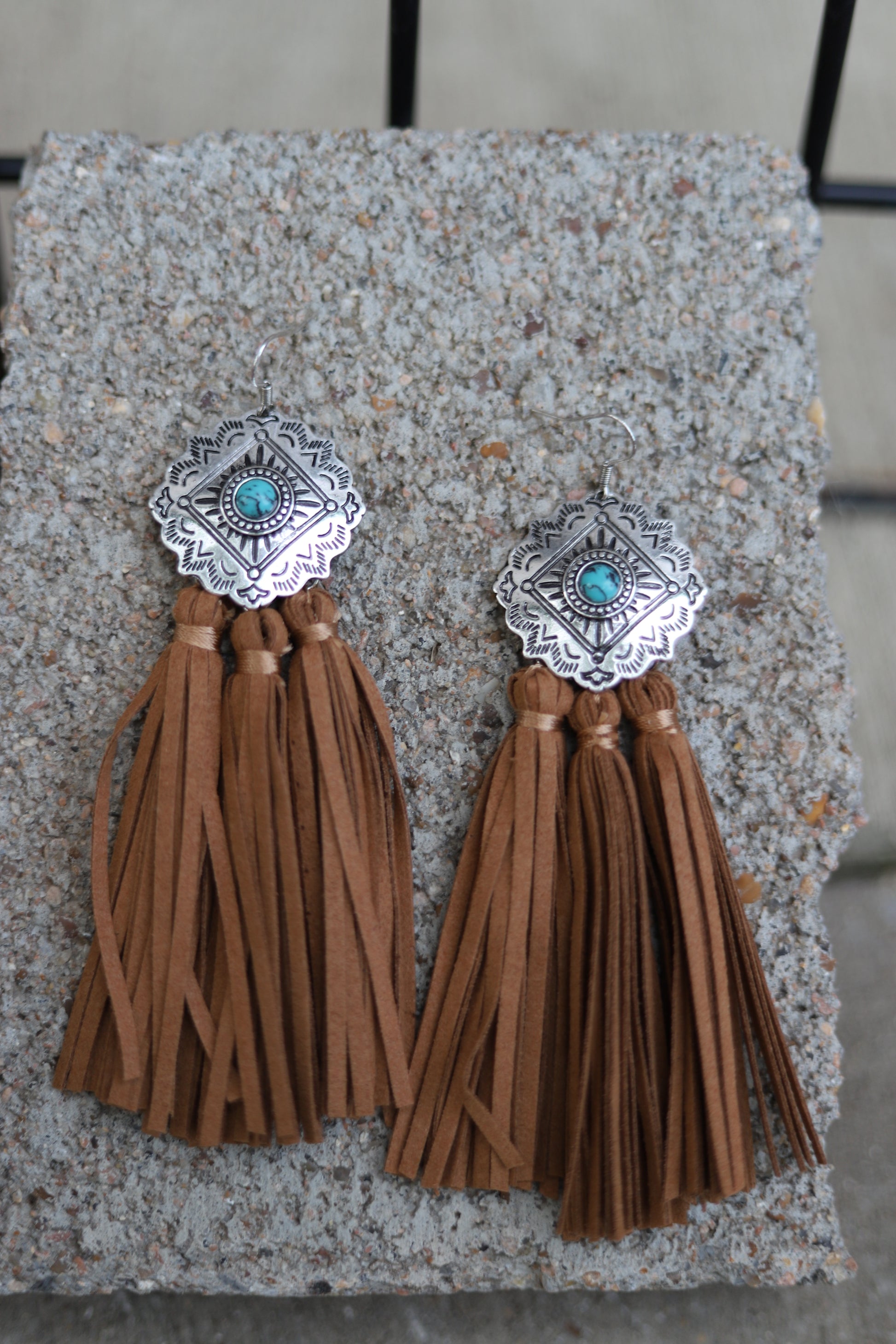 1586 T122 - T128 CONCHO FRINGE TASSEL EARRING
