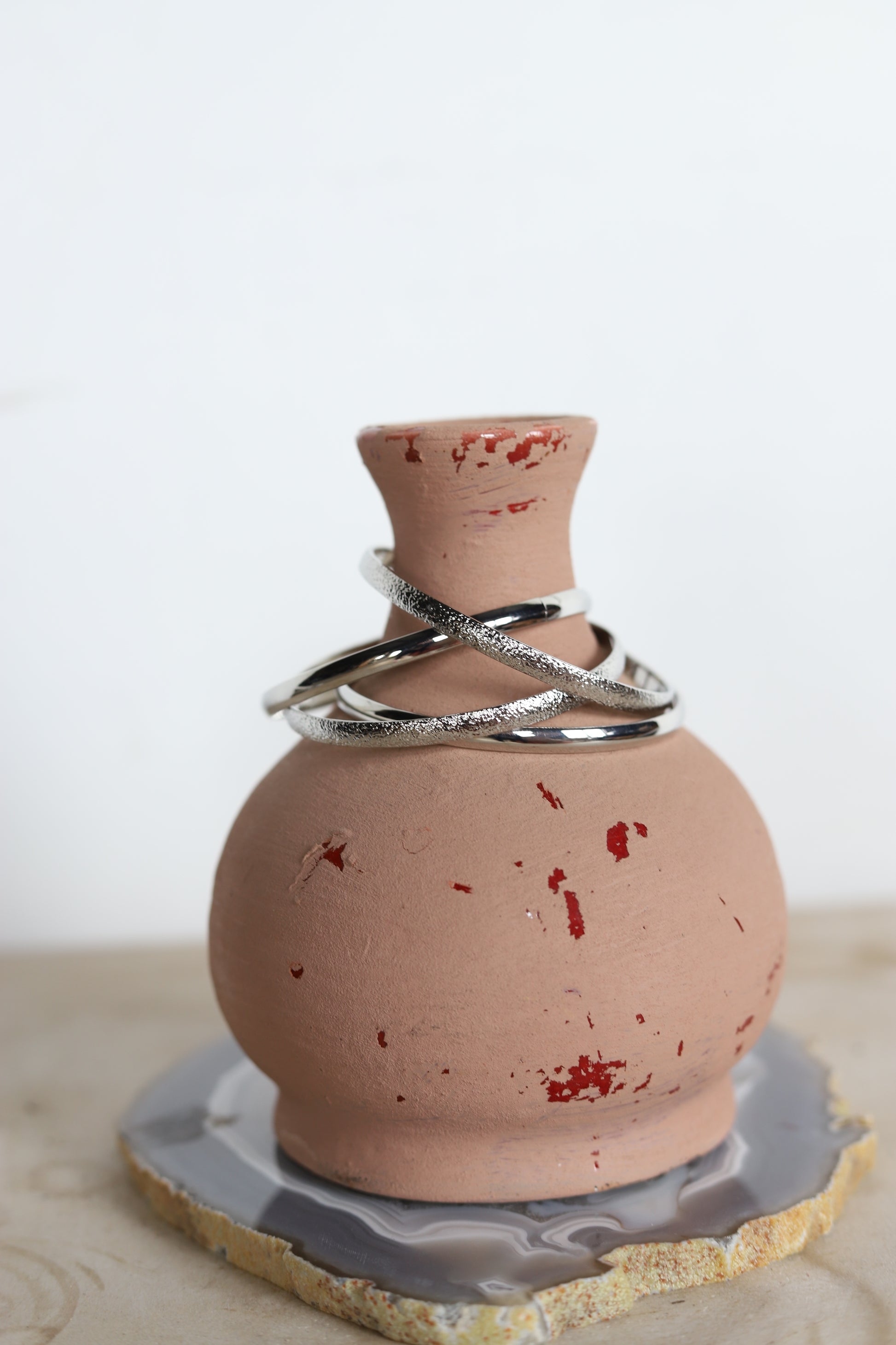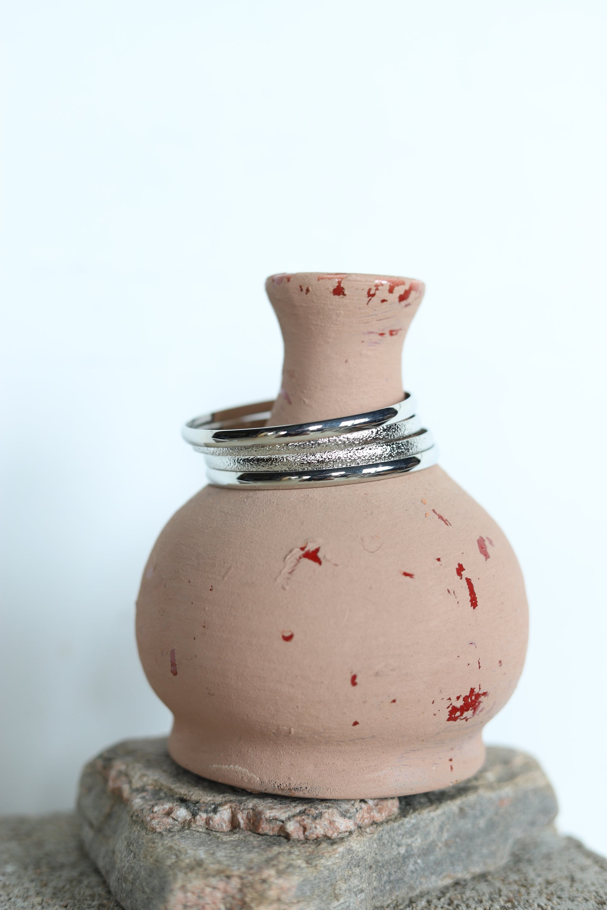 Introducing our chic and versatile 4-Set Faux Silver Bangle Set. The set includes four bangles of varying widths and textures, allowing you to mix and match. Ensures a comfortable fit, so you can wear them all day without any discomfort.
