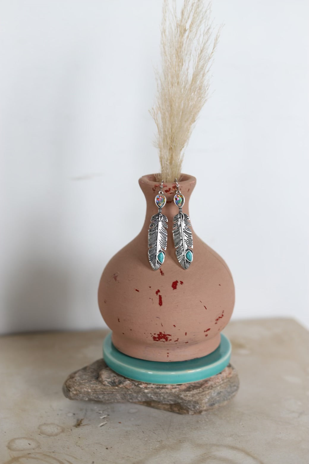 Introducing our exquisite AB Crystal Bezel Stone Earrings with Etched Feather Detail. Featuring shimmering AB crystal bezel stones that catch the light beautifully, adding a touch of sparkle to any ensemble. The highlight of these 3 INCH earrings is the intricately etched feather design that dangles gracefully on a french wire beneath the crystals. The lightweight design ensures comfortable wear all day long, while the secure closure provides peace of mind.