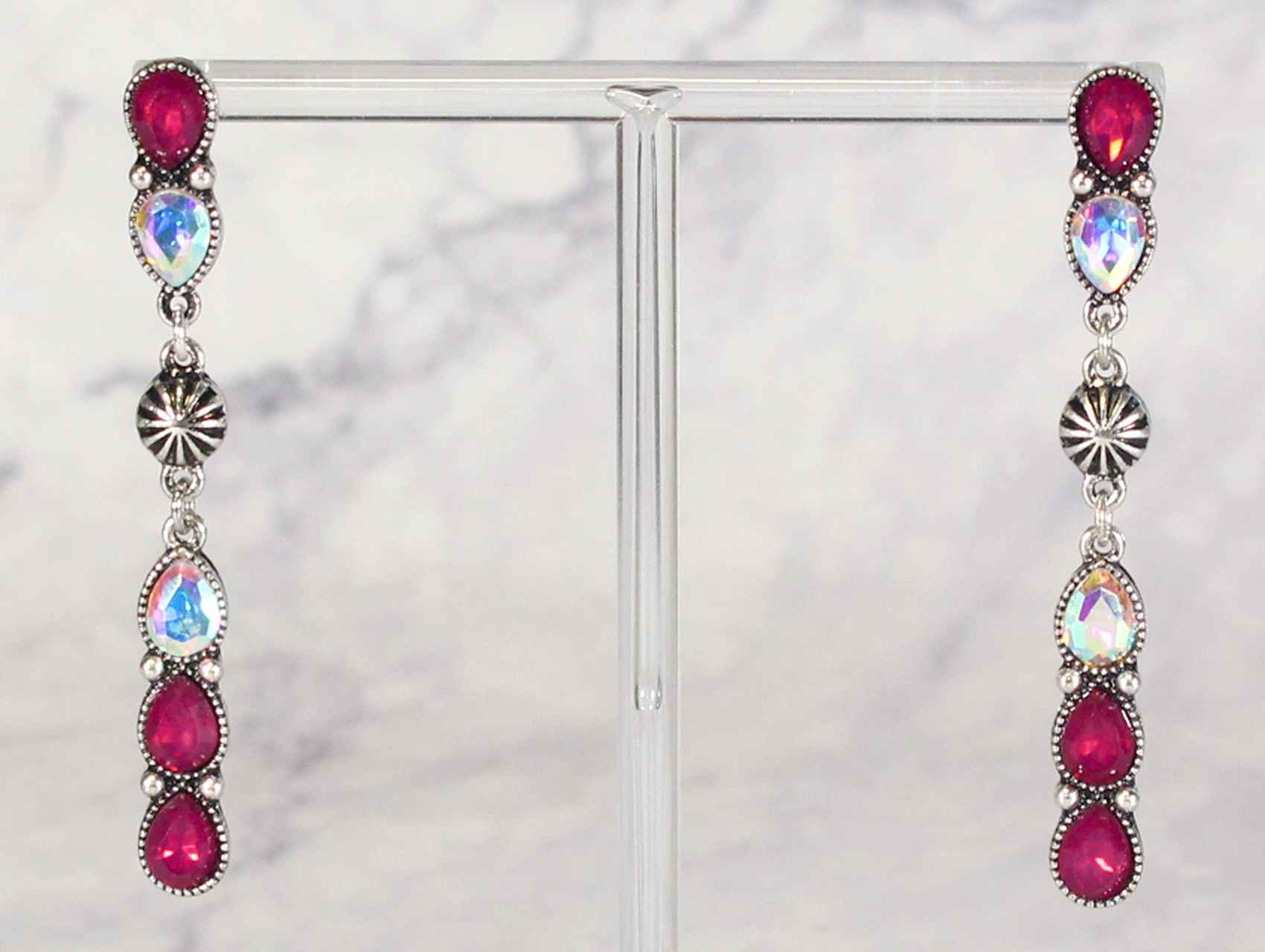 2291 T67 Ruby Red & Iridescent Crystal Drop Earrings – Vintage Charm