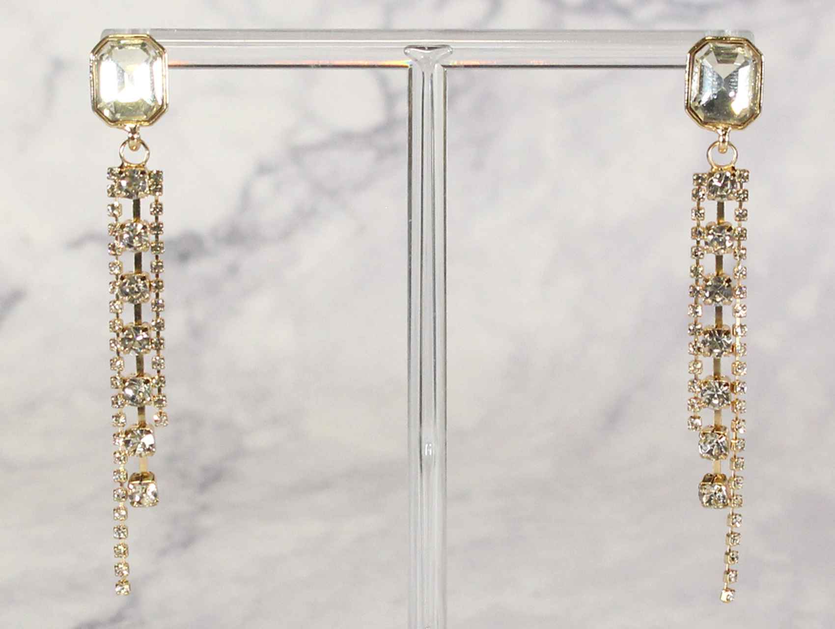 These glamorous drop earrings bring all the sparkle you need to turn heads! Featuring a stunning crystal stud and cascading rhinestone chains, they’re made to shimmer with every move you make. Perfect for date night, a fancy event, or whenever you just want to feel a little extra, these earrings add instant elegance.