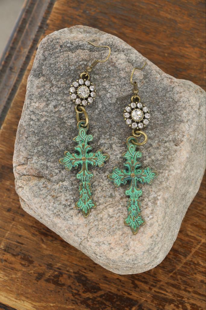 Patina cross earrings