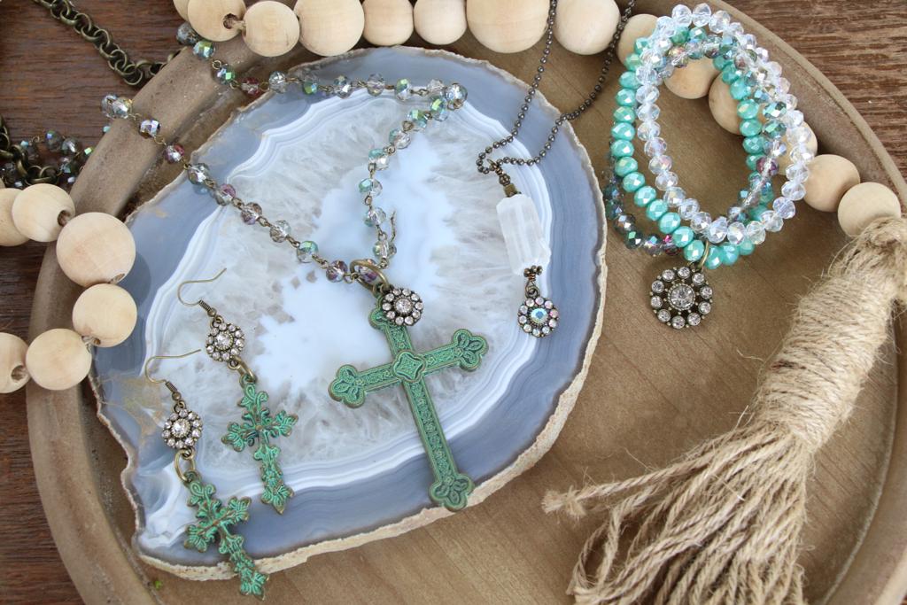 422502 R3-21 PATINA CROSS BLING FLOWER ER