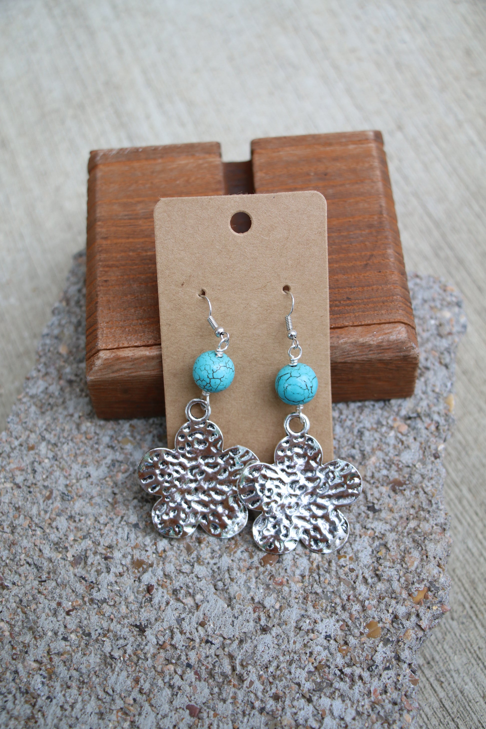 4237 R2-36 TURQ STONE W/ STAMPED RETRO FLOWER METAL ER