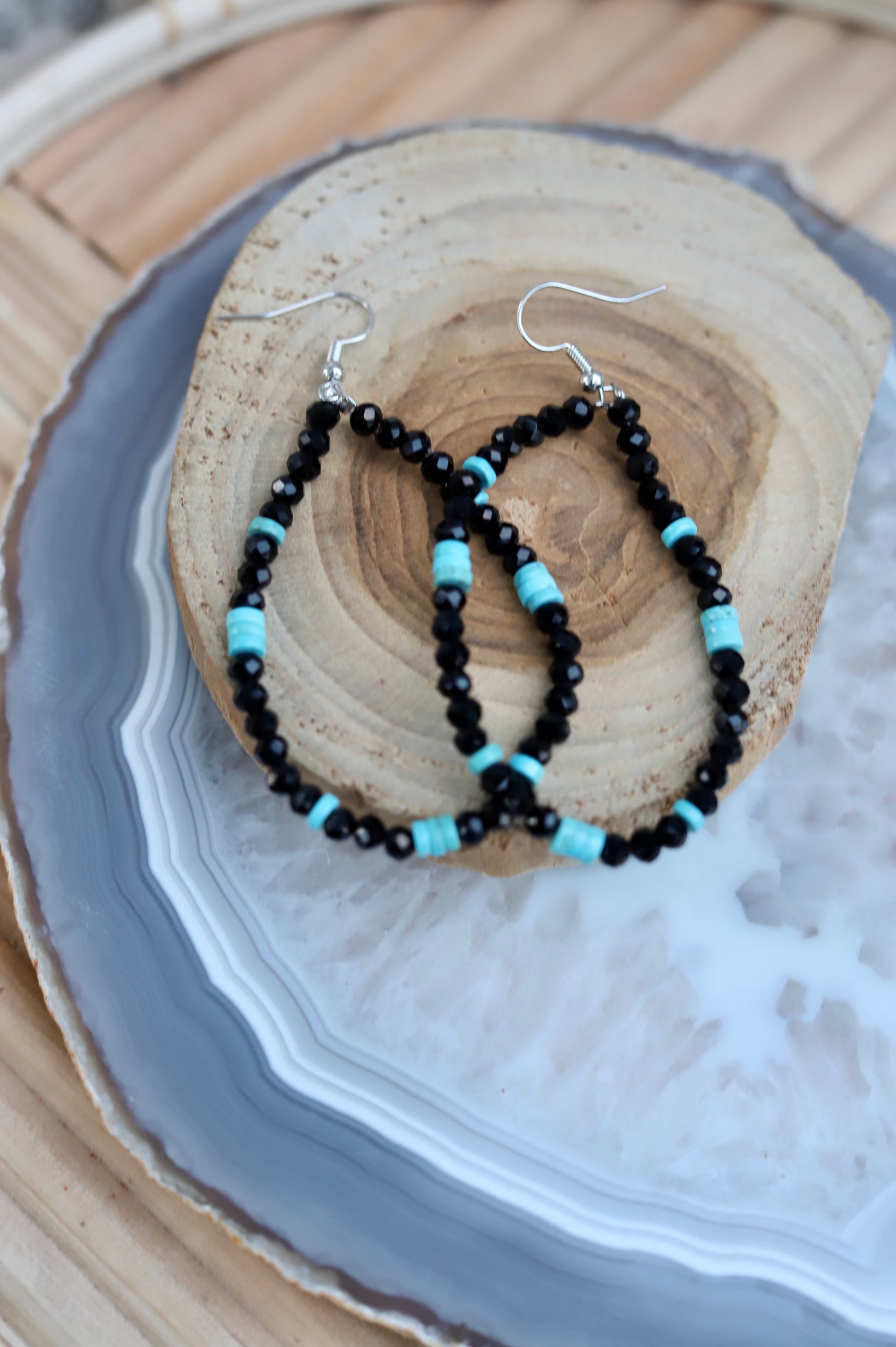 HAND BEADED LOOP CRYSTAL TURQUOISE EARRINGS