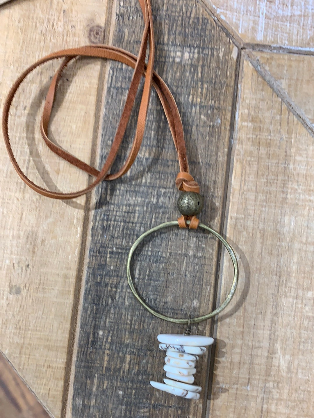 Turquoise Chip and Antique Gold Hoop on Brown Deer Skin Leather