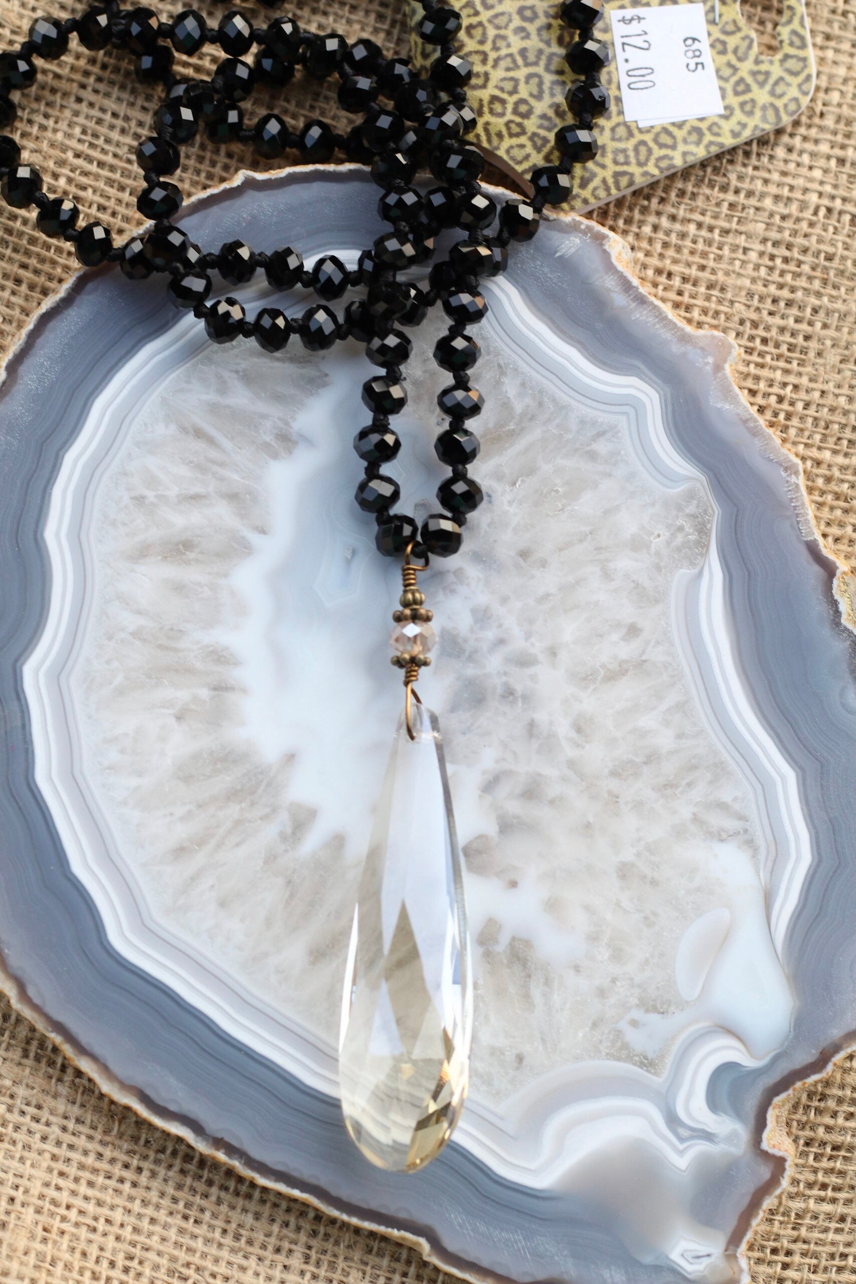 685 N1-12 Black Crystal Beaded NL w/ Crystal Oblong Drop