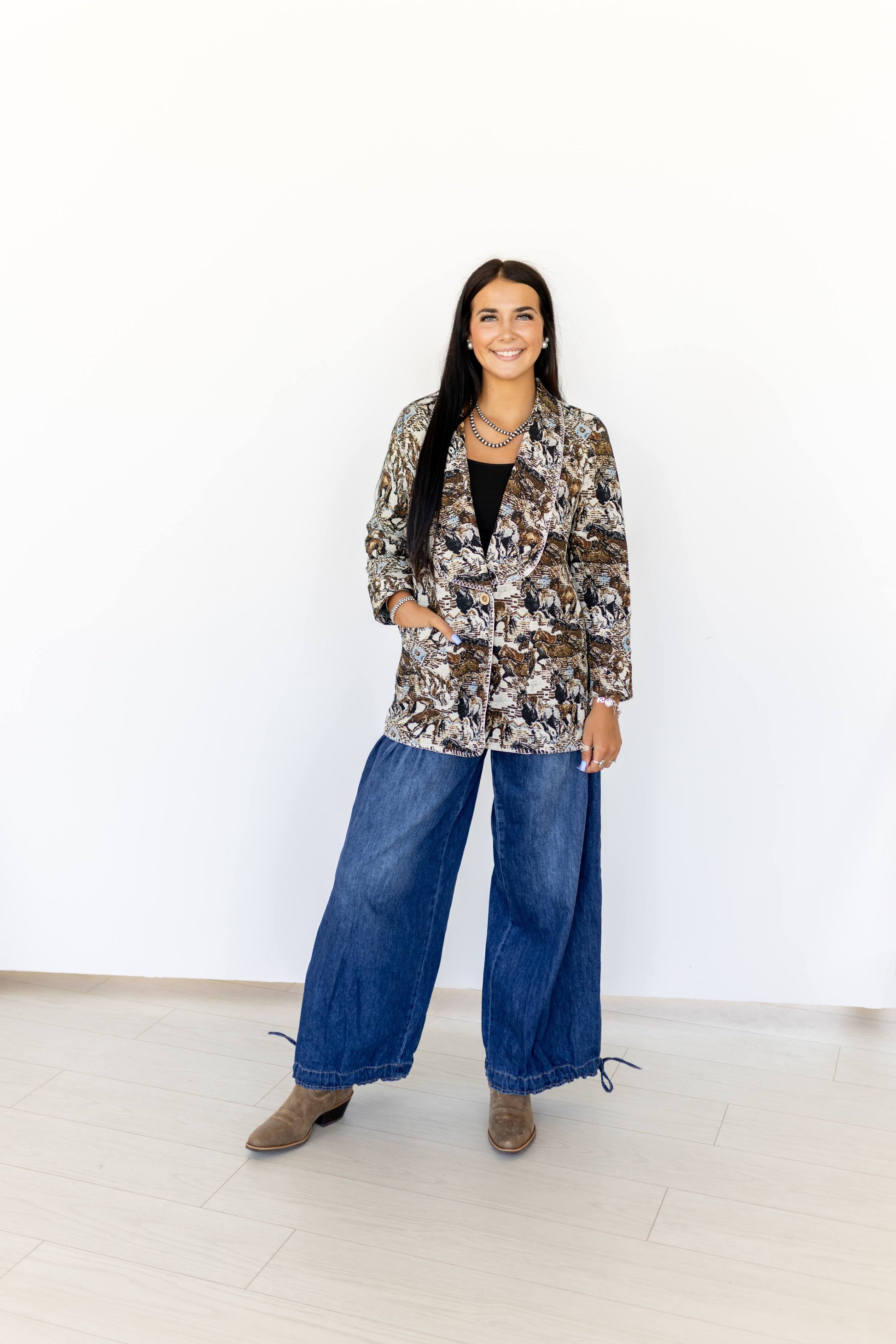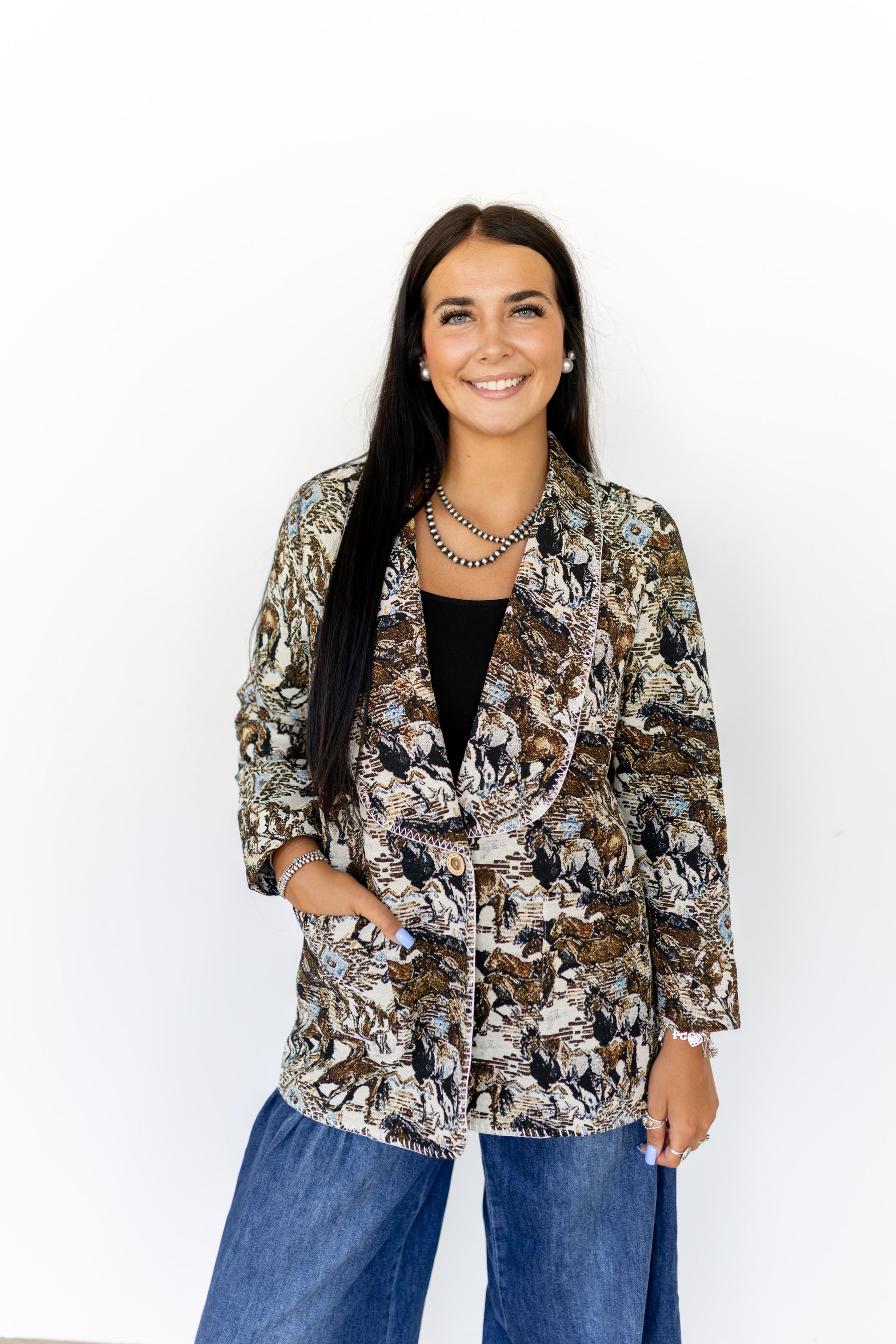 Product Name: Western Horse Scene Tapestry Blazer