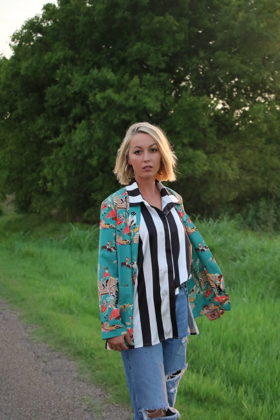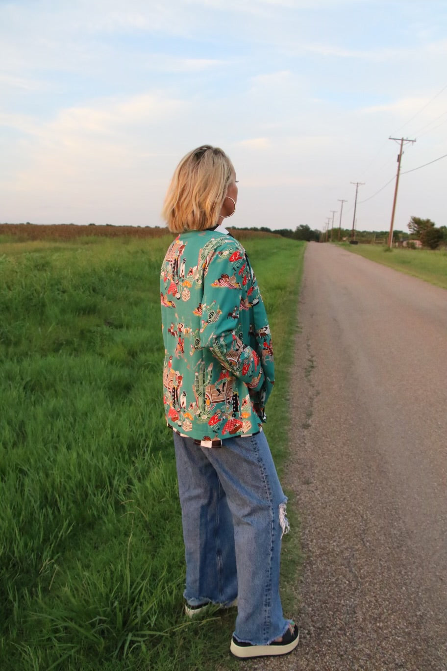 - Pattern: Eye-catching Western-inspired print featuring colorful desert motifs, animals, and scenic designs.