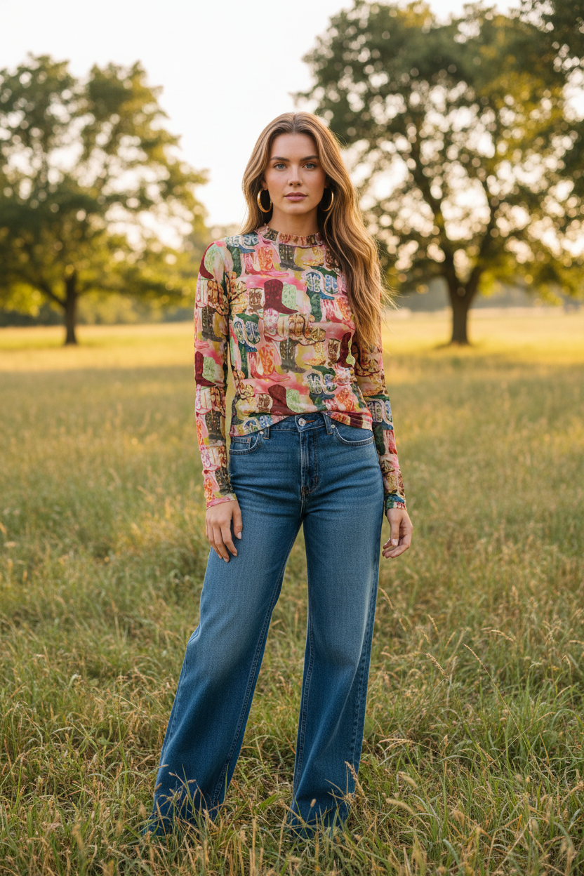 TH1221 FUNKY BOOT MESH TOP (7 Piece)