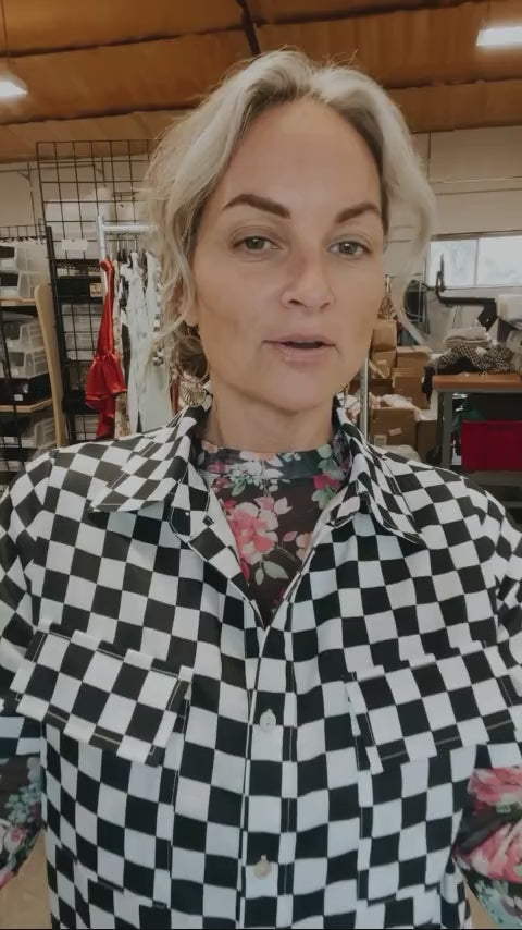 Step out in style with this versatile Black and White Check Dress/Kimono. Featuring a bold checkered pattern, this piece can be worn as a dress for a modern, chic look or as a kimono for effortless layering. The button-front design adds functionality and ease of wear, making it a standout addition to any wardrobe. Perfect for casual days, layering, or even a statement evening look.