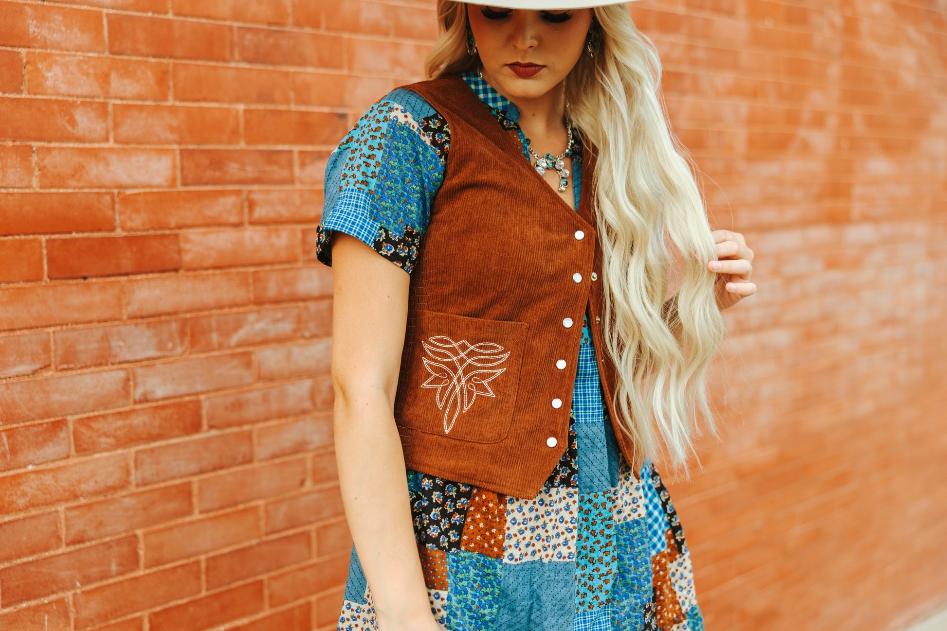 The TH160 Brown Corduroy Pearl Snap Vest is a timeless Western-style vest that adds rustic charm to any outfit. Crafted from rich brown corduroy, this vest is detailed with classic pearl snap buttons, giving it an authentic cowboy vibe. Its fitted design and structured cut make it ideal for layering over casual tops or button-down shirts, whether you're dressing for a day out or adding a unique touch to a more dressed-up ensemble. This versatile vest is a must-have for anyone looking to elevate their wardrobe with a touch of vintage-inspired style