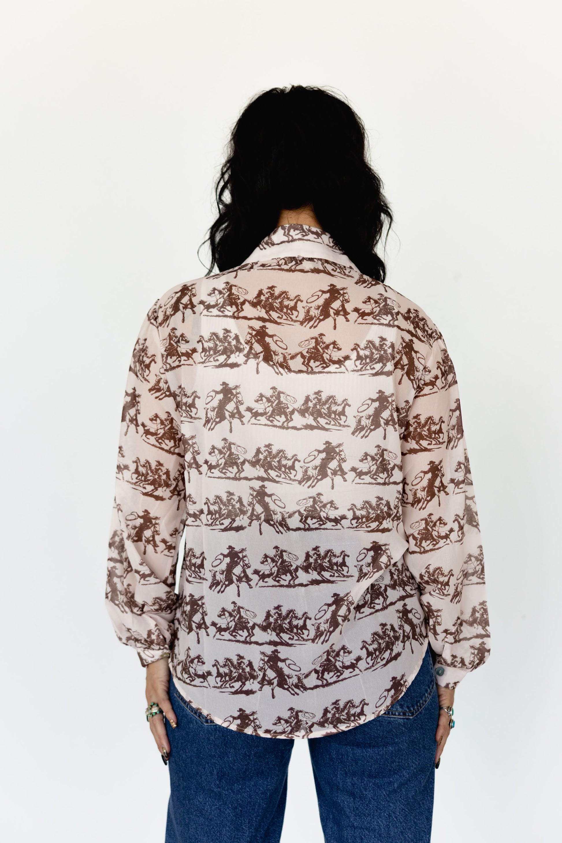Relaxed Fit Blouse with Hand-Designed Western Graphic