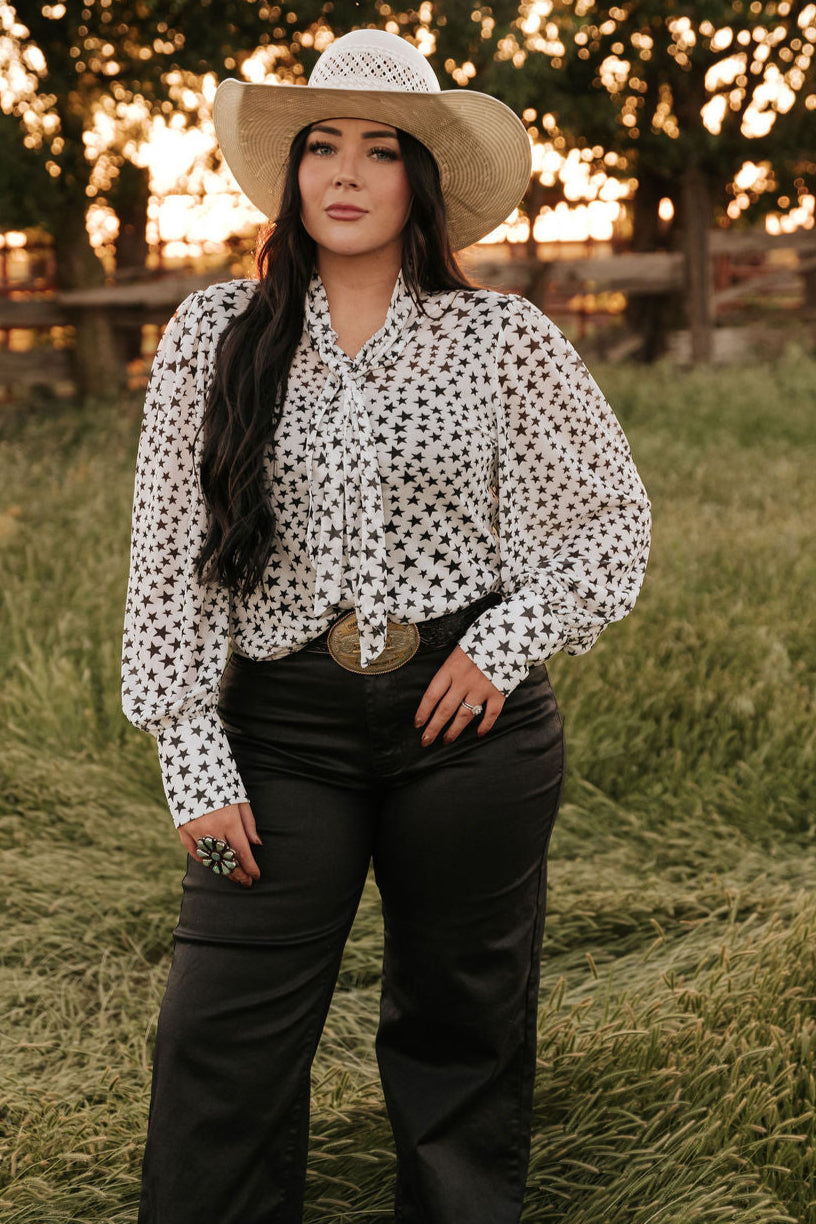 TH2820 TINY STAR MESH TIE BOW LACE TOP (7 Piece)