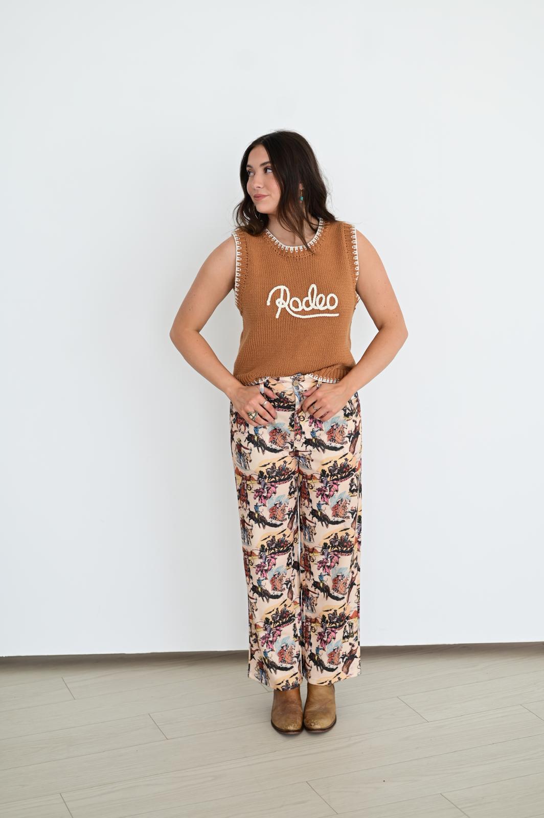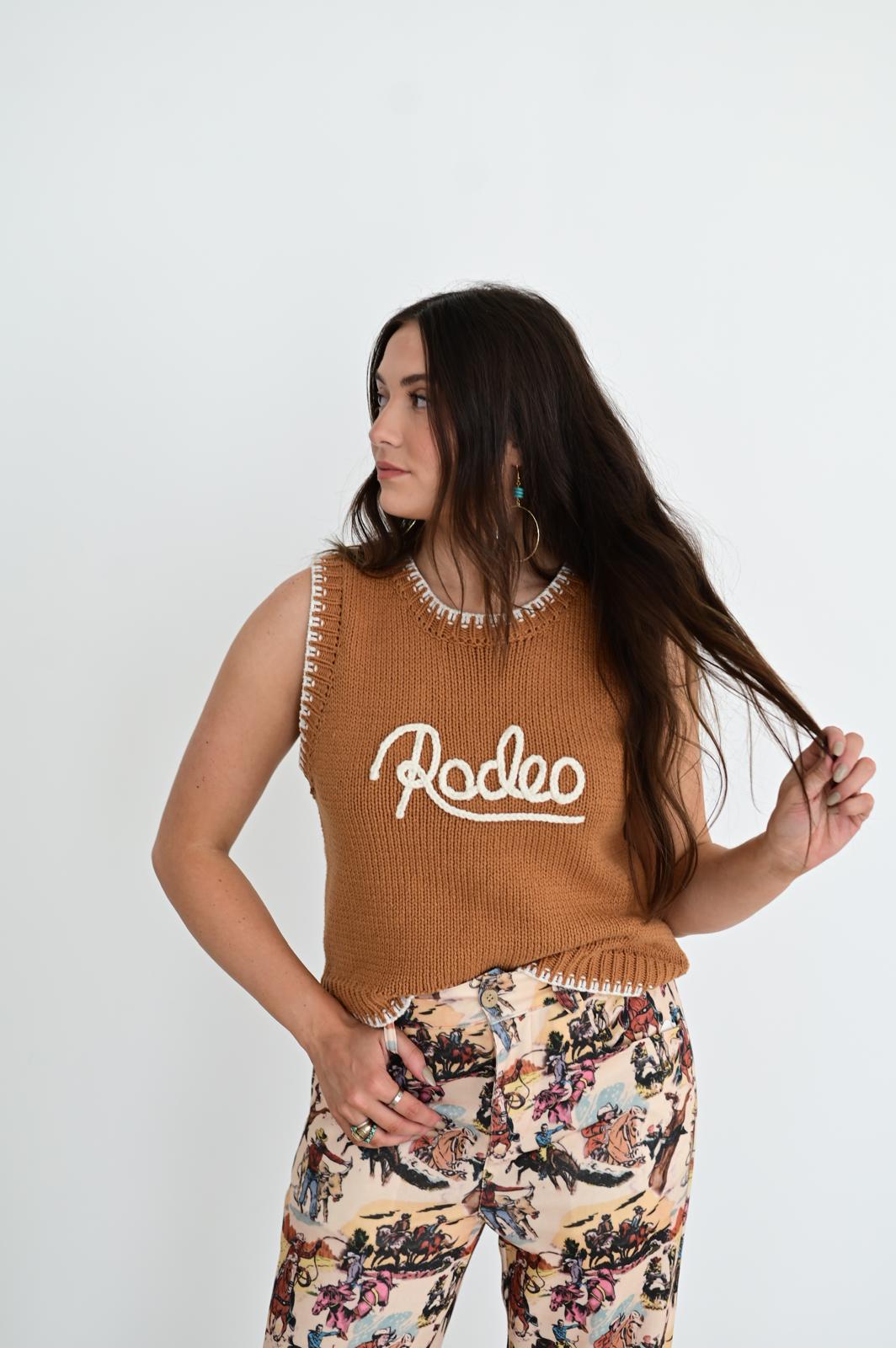 This trendy knit sweater vest blends Western-inspired style with casual comfort.