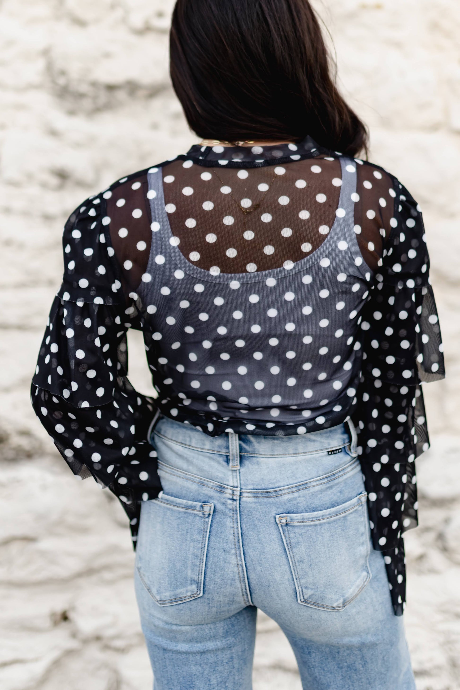 TH70 BLACK WHITE DOTS MESH RUFFLE TOP (7 Piece)