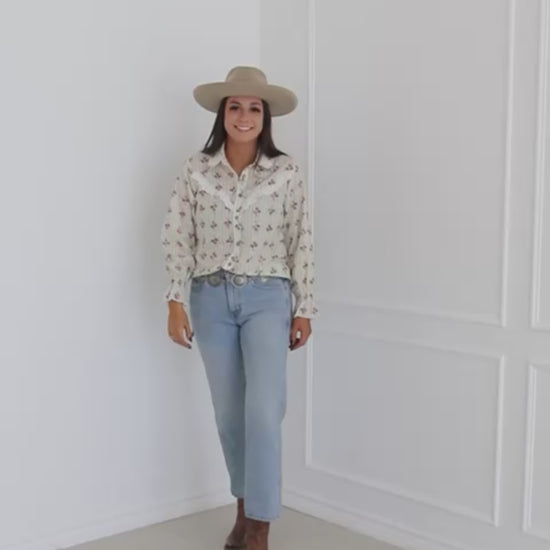 A little bit vintage, a little bit western, and a whole lot of cute—this blouse has it all! With soft pastel stripes, delicate floral prints, and eyelet lace trim, it’s the perfect mix of sweet and stylish. The button-up front and pointed collar keep it classic, while the relaxed fit makes it an easy go-to for any occasion.