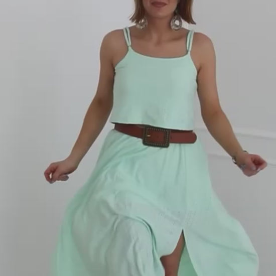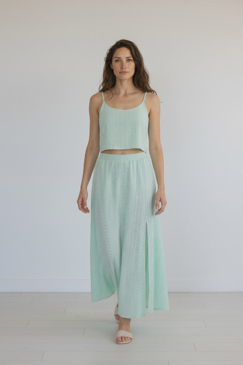 Mint Eyelet Crop Top & Maxi Skirt Set
